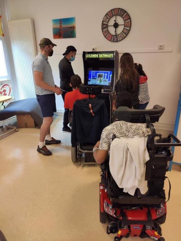 Pour ne pas oublier la bonne vieille époque des plus anciens, nous avons financé l’achat d’un jeu d’arcade pour les enfants malades et leur permettre de s’épanouir sur les premiers jeux numériques sortis il y a plusieurs années…